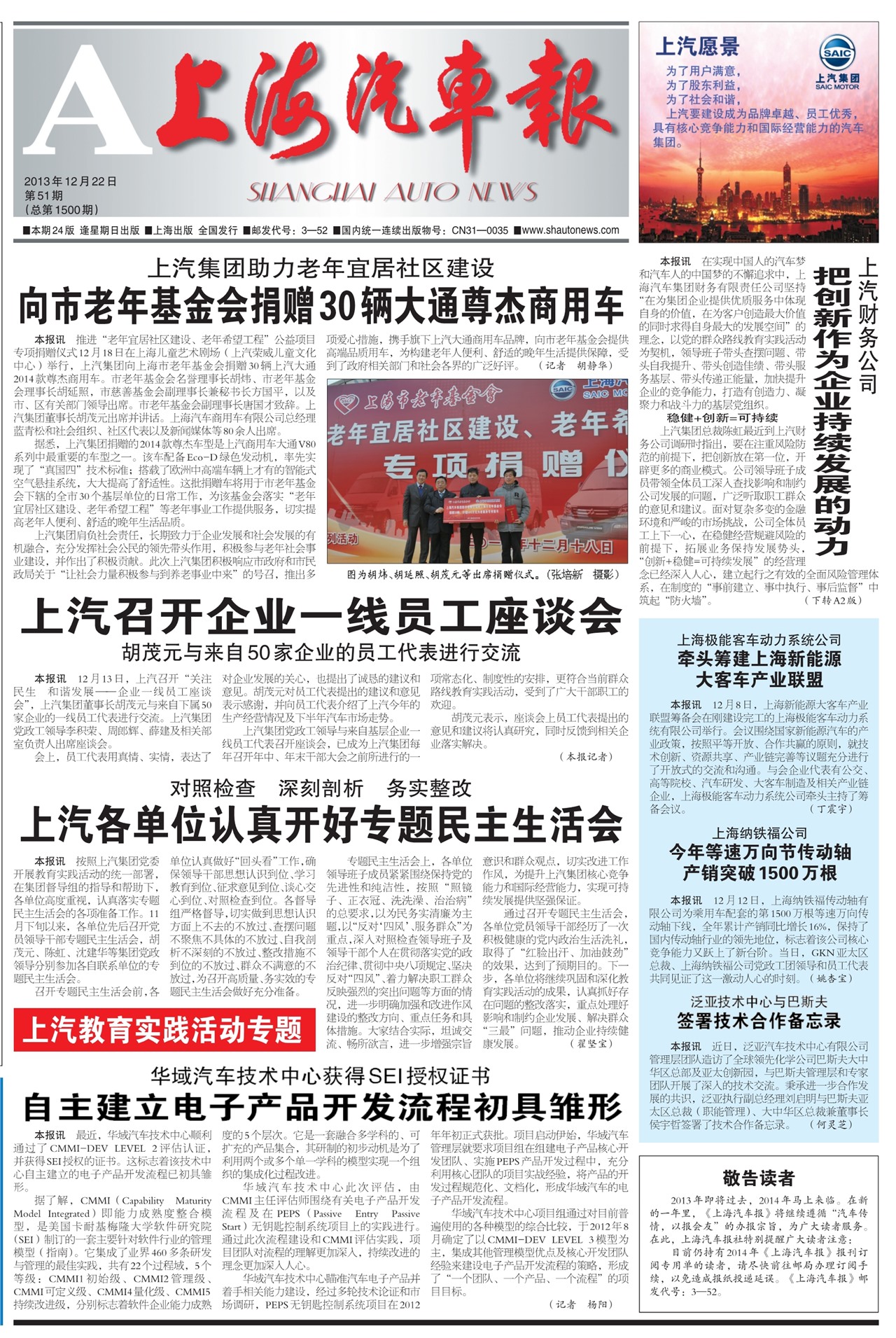 上海汽车报首页 向市老年基金会捐赠30辆大通尊杰商用车 把创新作为企业持续发展的动力 上汽召开企业一线员工座谈会 上汽各单位认真开好专题民主生活会 自主建立电子产品开发流程初具雏形 牵头筹建上海新能源大客车产业联盟 今年等速万向节传动轴产销突破1500万根 签署技术合作备忘录