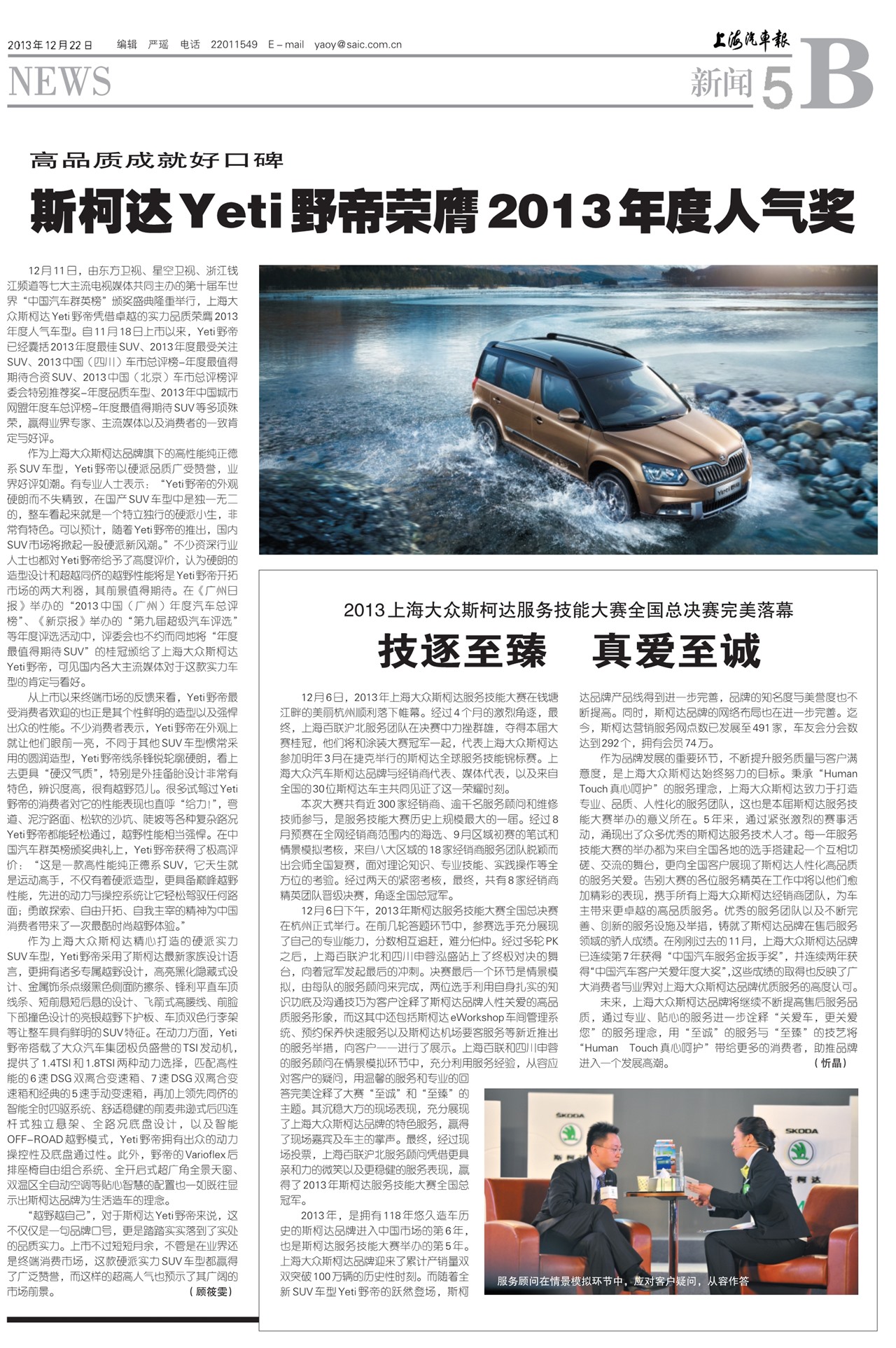 斯柯达Yeti野帝荣膺2013年度人气奖
