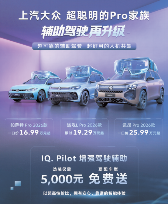 同时,上汽大众宣布:凡选购Pro家族顶配车型,即可免费享用带“端到端高快NOA”的IQ.Pilot增强驾驶辅助系统;选装也仅需5000元,便能将这套辅助驾驶系统“轻松上车”。