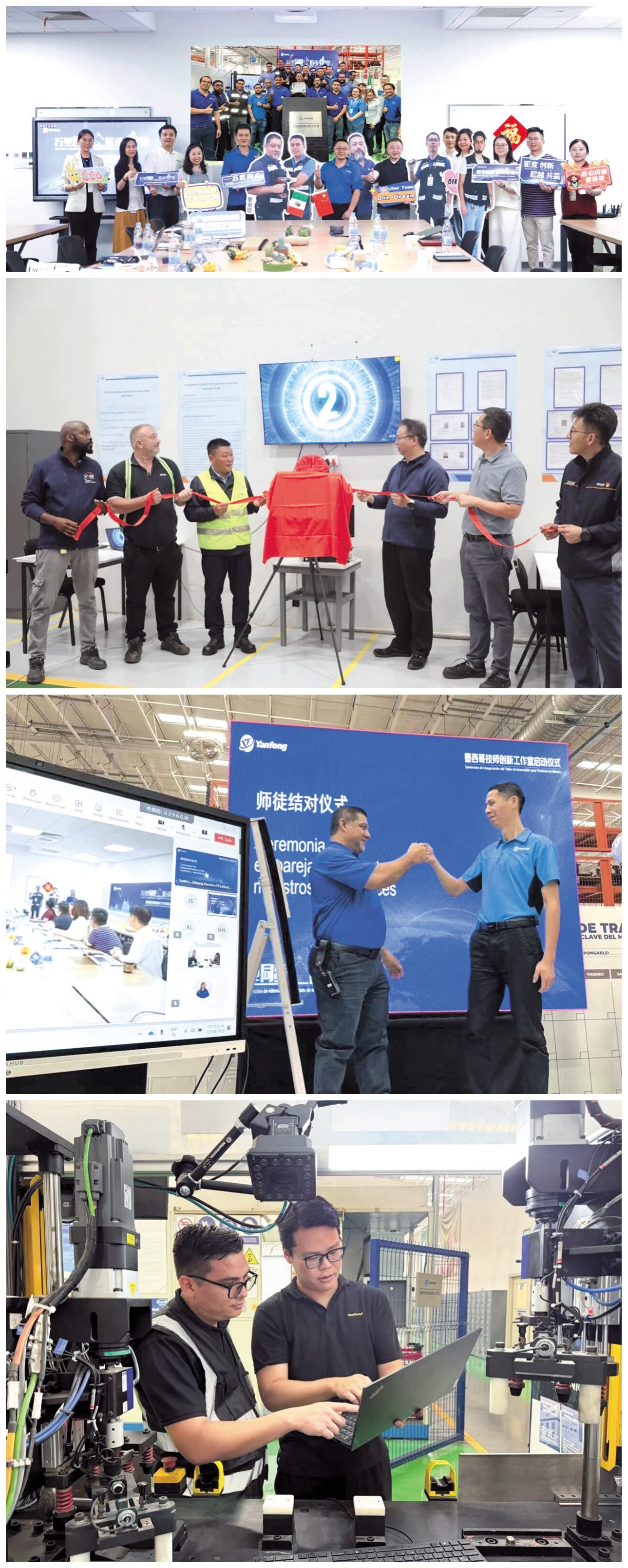 在技术攻关与经验沉淀上,设立立功竞赛项目,以实战任务推动技师交流创新。“这次立功竞赛,我们要攻克AI视觉检测的精度问题!”在项目签约环节,墨西哥技师Julio Ruelas(里奥匠)信心满满。每个项目都瞄准生产痛点:激光焊接的参数调整、智能化改造的细节优化……只要有好的想法,就能立刻用工作室的设备验证,把创意转化为成果。通过建立区域资源共享机制与AI知识库,实现结构化经验沉淀和90%以上复杂问题自主解决的目标。墨西哥技师Raul Venancio Marin(劳尔匠)说:“我们把技师创新工作室视为‘灵感加油站’,我们期待与公司共同成长。”