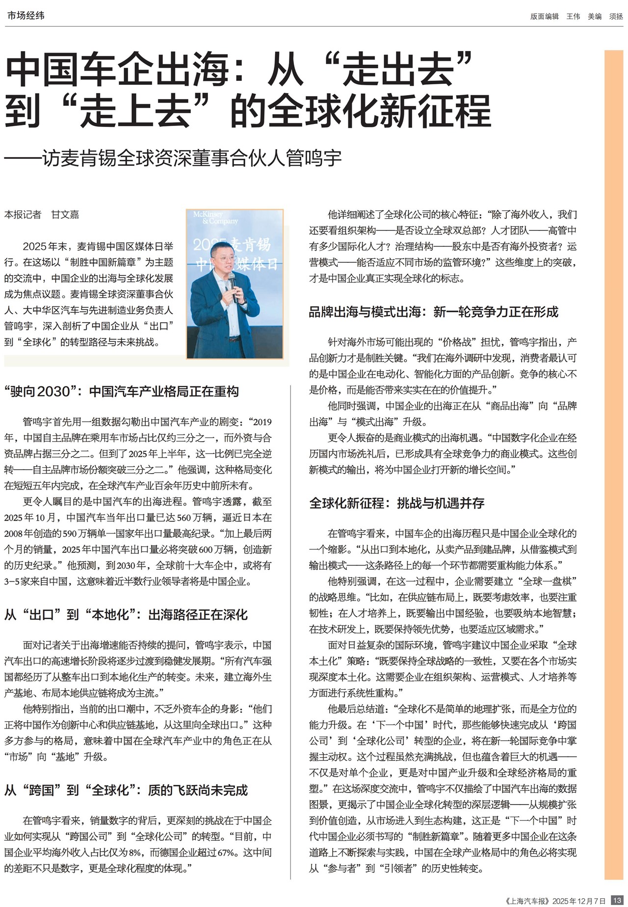 中国车企出海:从“走出去”到“走上去”的全球化新征程
