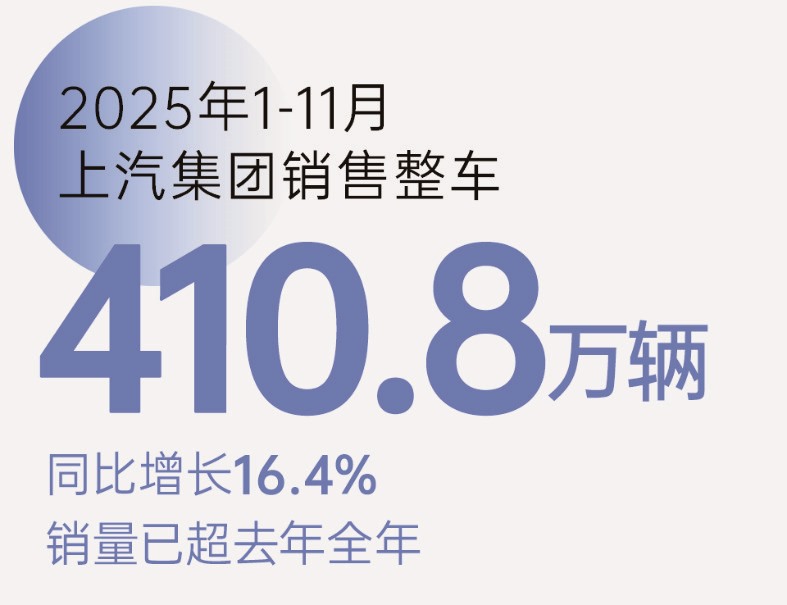 ◎12月1日,上汽集团发布销量数据,1-11月销售整车410.8万辆,同比增长16.4%,已超去年全年销量。
