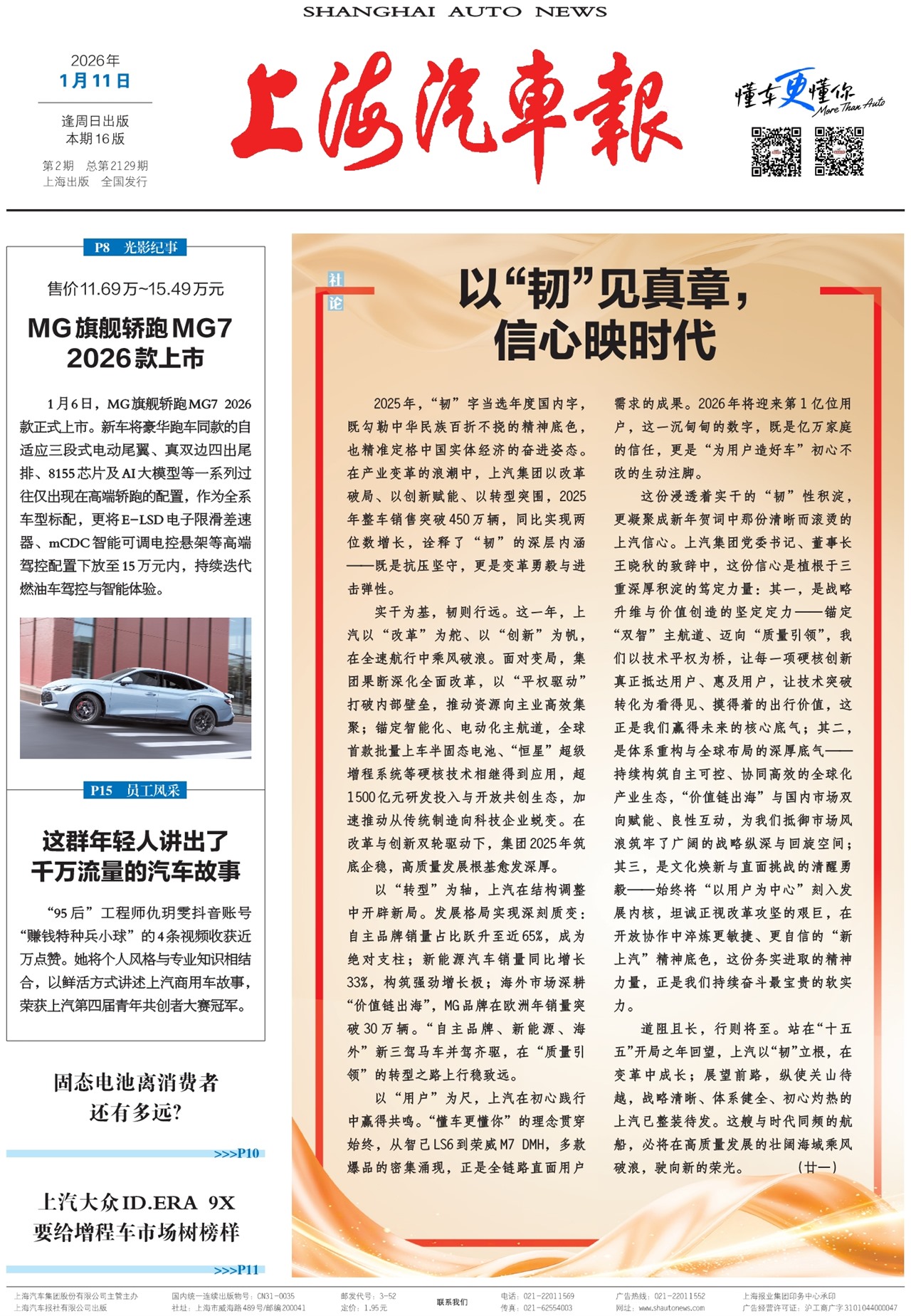 上海汽车报首页 以“韧”见真章,信心映时代 MG旗舰轿跑MG7 2026款上市 这群年轻人讲出了千万流量的汽车故事