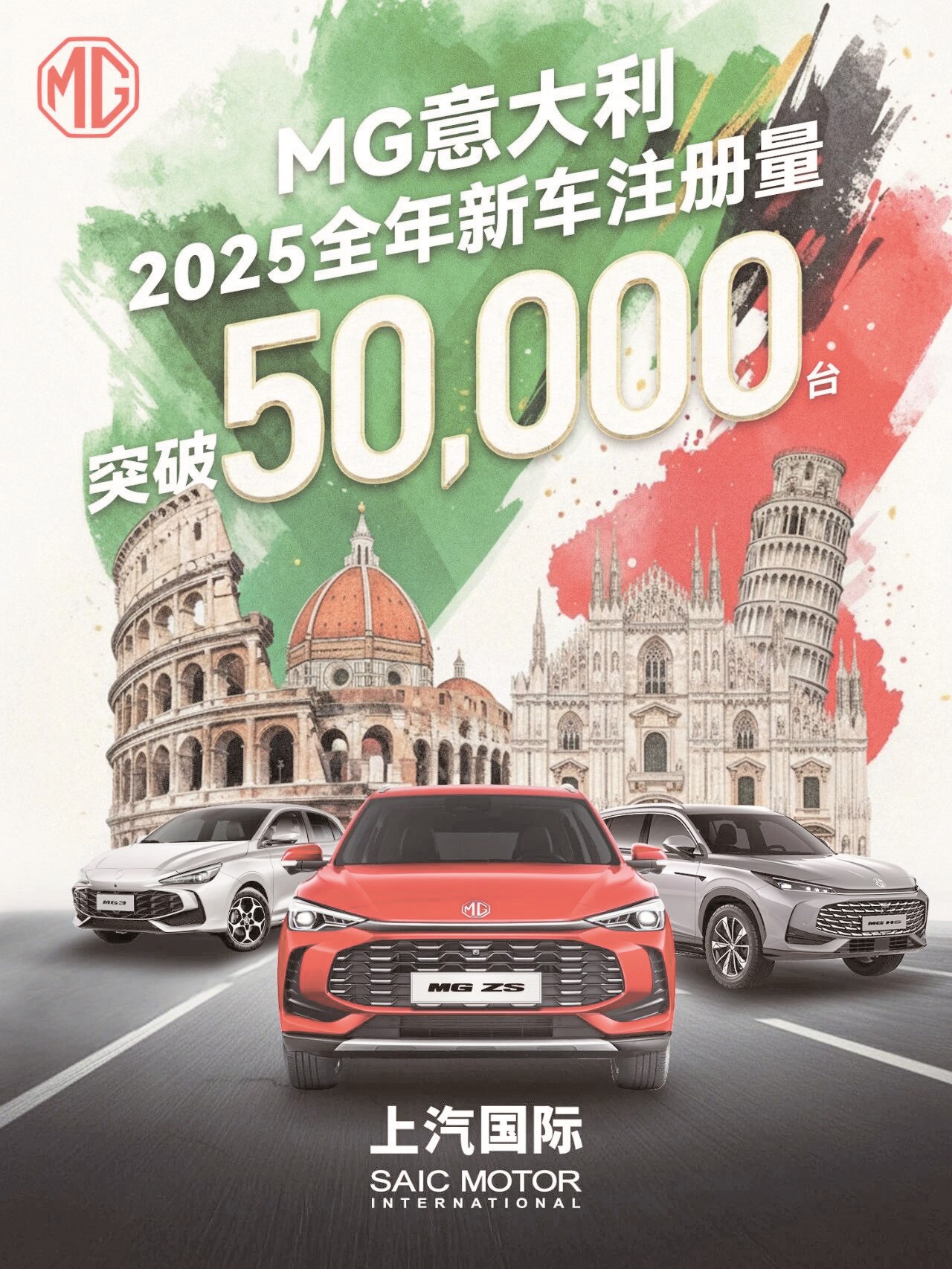 数据显示,2025年,MG在意大利全年新车注册量突破5万辆,MG ZS跻身意大利市场十大畅销车型之列。2025年10月份,MG HS在西班牙市场销量达1044辆。2025年6月至10月,MG HS连续五个月位居西班牙PHEV市场销量第一。