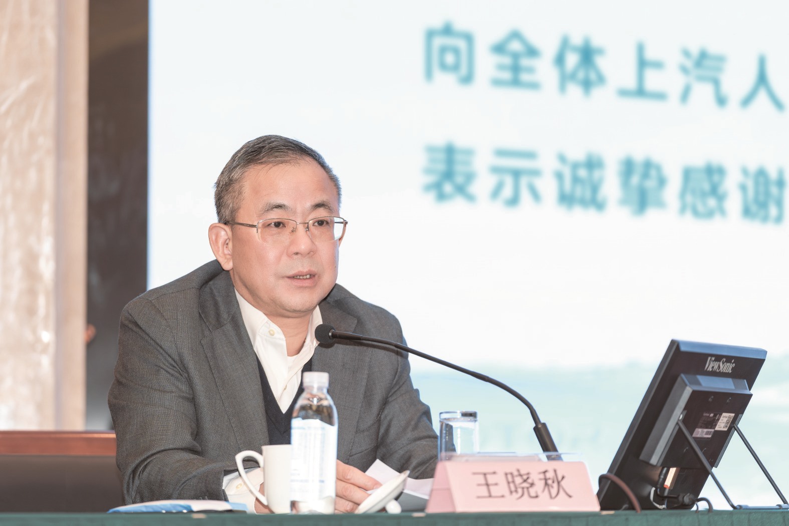 王晓秋向全体上汽人一年来的辛勤付出表示感谢并指出,国内汽车市场容量很大,是必须牢牢守住的“基本盘”;海外汽车市场有挑战但也有机遇,是必须紧抓不放的“增长极”。坚持国内、国际两个市场并举开拓,既是顺应行业发展的务实选择,也是上汽实现可持续发展的重要路径。