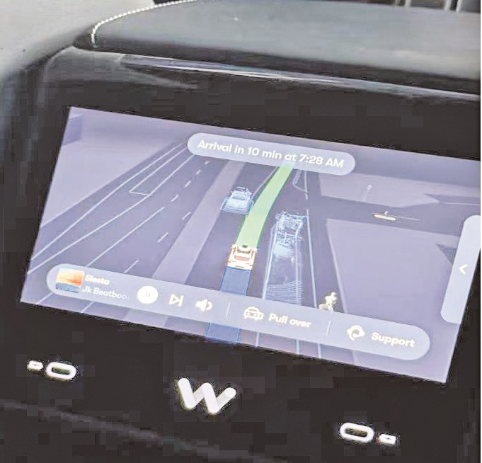 在联合广场附近的高密度车流中,车辆穿梭自如,并能提前识别行人、平缓减速,无急刹顿挫感。面对旧金山典型陡坡地形(如坡度超过15%的俄罗斯山路段),系统能精准控制油门与刹车,有效避免溜车。车内交互界面实时显示系统感知信息,如行人位置、交通灯状态,这种透明化设计增强了乘客信任度。车辆在行驶过程中,乘客甚至能安心处理手机邮件,体现出系统带来的安全感。与部分人类司机相比,Wavmo始终如一的驾驶风格反而降低了乘车焦虑。