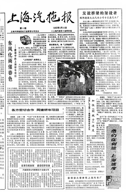 去年年底到今年年初的短短几个月,是历史长河中的短暂一瞬间,国务院总理赵紫阳,副总理姚依林和国务委员张劲夫等领导先后视察了上海汽车厂。国务院领导同志对上海汽车工业系统积极引进国外先进技术,合资生产具有80年代先进水平的轿车产品予以充分的肯定和支持:“我们的汽车工业正处在旭日东升的黄金时期,要紧紧抓住这一有利时机,加快步伐,高速度,高效益,高水平地把轿车工业搞上去。”他们还热情洋溢地说:“加快上海轿车工业上马速度,我们是赞助人和支持者。”是的,轿车工业作为振兴国民经济发展的“龙头工业”,得到中央和地方各级领导的关切和支持。兴建一座年产三十万辆轿车的现代化汽车城即将列入“七五”规划;市委、市政府多次召集会议,要求各方大开绿灯,支援轿车工业快速上马;市政府各委办还组织了专家进行论证,制订规划,打破常规,从人力、财力、物力等各方面给予优先考虑;汽拖公司改变工作作风,组成轿车工作班子,深入现场办公,帮助企业解决种种困难。殷切的期望,热情的关怀,巨大的支持,汇成一股强劲的东风,化为阵阵春雨,滋润着上海汽车工业职工的心田。