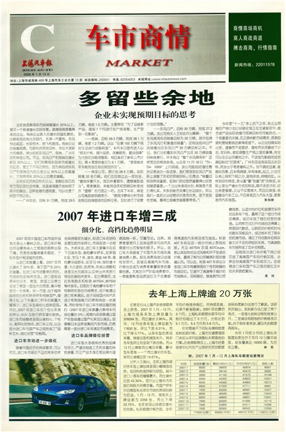 今年是“十一五”承上启下之年,各企业预期的产销计划已经确定或正在加紧敲定中,能否使产品实际销售与预期目标尽可能吻合,是一个很重要的关键,在正确判断市场需求、资源趋势和营销影响因素等前提下,从企业自身实际出发,谨慎而不是冒进、理性而非浮躁地下计划、定目标,诸如调整生产线之类的事情,完全可以在企业的掌控之中,不该成为影响完成预期目标的“拦路虎”。广州本田没有实现去年目标,完全出于笔者意料之外。对不确定因素、难确定因素,应未雨绸缪,早有考虑。总之,计划可以有上限和下限之分,留有余地,伸缩自如。从快到好的转变,是从重“量”到重“质”的转变,实际上是生产增长方式的转变。稳中求进才好,好比快更重要,企业不仅要做大,而且应做强;我国建设汽车工业,不仅是迈入汽车大国,更要走向汽车强国。 张伯顺