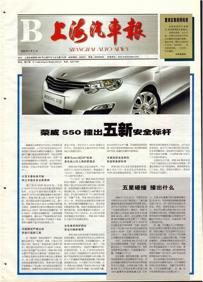 2008年12月24日,中国汽车技术研究中心公布了第四批7个参与碰撞测试车型安全性能的评定结果,至此,该中心已经完成了2008年度全部28个车型的试验评价。据统计,2008年获五星以上车型由2006年的8.3%激增至46.4%。其中,自主品牌上汽荣威550和奇瑞A3各占据了1个席位;若再加上在本年度第三批C-NCAP评价试验车型中同样获得“五星”安全评价的一汽红旗HQ3,年内自主品牌车型达到C-NCAP“五星”标准的车型已达到3个,创造了自主品牌车型有史以来最好的安全碰撞成绩纪录。