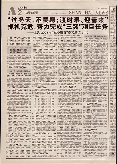 编者按:2009年在自然冬天和经济“冬天”的双重严寒中到来了。2008年底召开的上汽干部大会上,蒋以任监事会主席、胡茂元书记和董事长、陈虹总裁、沈建华总裁分别提出了上汽如何“过冬”的指导思想、目标任务和工作要求。根据党政报告精神,上汽党委宣传部编写了本篇形势任务教育材料,以飨读者。