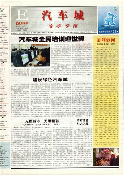 在刚刚过去的2008年,汽车城安亭经历了极不寻常的挑战。面对严重低温雨雪冰冻、汶川特大地震等自然灾害和国际金融危机的挑战,广大干部群众千方百计克服困难,积极参与和推进汽车城建设,圆满完成年初确定的各项目标和任务:全年实现增加值130.5亿元,同比增长22%:完成工业总产值390亿元,同比增长25.8%;实现财政总收入29.42 亿元,同比增长11.6%,连续两年列嘉定区第一:实现社会消费品零售总额43.5亿元,同比增长28.3%。