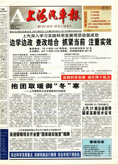 面对当前严峻的经济形势,上汽集团积极实施科技政策,推动企业技术创新,完成了包括延锋伟世通汽车饰件系统有限公司的荣威750仪表板总成、中国弹簧制造有限公司的变径、变刚度、变截面腰鼓型汽车减震弹簧等新产品的高新技术成果转化18项,企业按政策享受到了“高新技术成果转化项目”专项资金,同时,企业享受到“研发费用150%加计抵扣纳税”政策,有效提升了上汽的创新能力和核心竞争力。