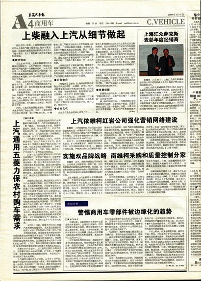 这位供应商还说,最近国家出台的汽车产业调整振兴规划,有利于微车市场发展。尤其是微客车型,不仅能享受到1.6L 排量以下减少购置税的优惠,而且国家对农村汽车消费市场的50亿元财政补贴,将更加刺激农村微客市场的购车需求。据统计,作为农民重要的致富工具,微车消费占据农民购车的很大比例。购置税降低和财政补贴政策的双重利好,可以同时在微车产品上显现。在二者促进下,平均每辆微车的价格有3000~5000元的优惠空间,这对于市场价格在3万~5万元的微车而言,降幅是相当大的。由此可以预见,2009年微车消费将得到最大程度地释放。对于所有的微车生产厂商来说,今年的微车市场,绝对是个不可多得的机遇。