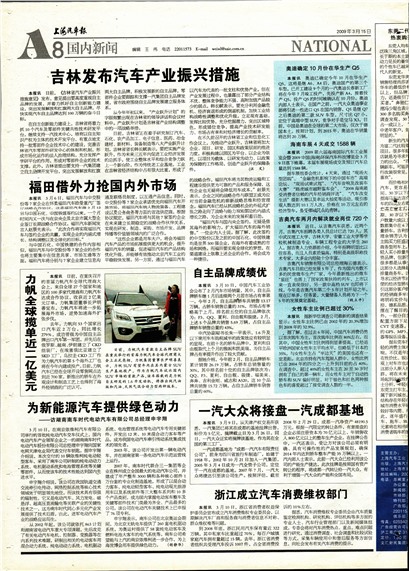 申宇翔表示,南车公司在北京奥运会期间,为北京无轨电车提供了260套电机驱动系统,为奥运村提供了58套纯电动客车及燃料电池大客车的电气系统等。南车公司希望能与上汽的南京依维柯进一步合作,为上海世博会用车提供绿色动力。(胡静华)