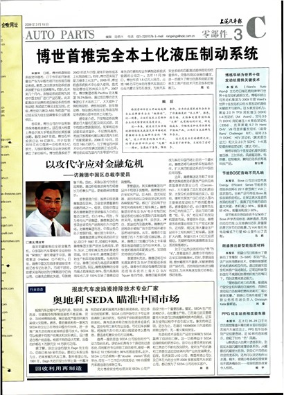 李爱昌说,其实瀚德集团的产品并不局限于调整臂。瀚德集团的许多知名产品,如ABS、盘式制动器、液压系统以及柴油发动机用的各种泵类产品,都已广泛应用于世界知名商用车和工程车辆上。瀚德集团的轿车及SUV 电子控制四轮驱动系统也被众多国际汽车制造商所采用,如奥迪TT、沃尔沃、大众、凯迪拉克及路虎等。瀚德的产品将逐步被推广到中国市场并被中国市场所接受。去年,瀚德在中国销售了约1万多只盘式制动器。近来,瀚德正计划通过与本土卡车或客车制造商建立合作伙伴关系,以快速拓展商用车配套业务,实现稳定持续的市场增长。