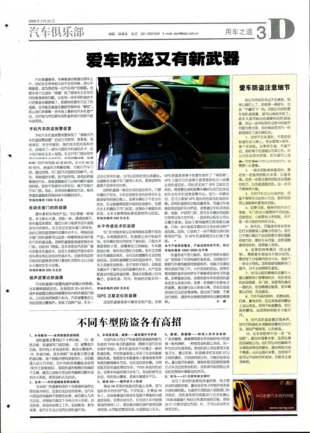 不同车型防盗各有高招