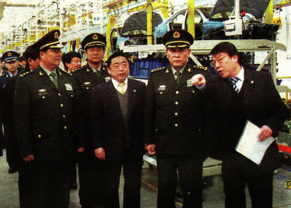 3月26日,国务委员兼国防部部长梁光烈一行在上海市副市长ABJ陪同下,来到上海汽车集团股份有限公司乘用车公司临港生产基地考察。上汽董事长胡茂元、上海汽车执行副总裁、上海汽车乘用车公司总经理陈志鑫向他们介绍了上汽自主品牌荣威的生产及新能源汽车的研发等情况,并陪同参观荣威生产线。(周欢欢 摄影报道)