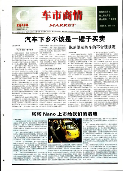 汽车出口市场,在金融危机的阴霾下,原先的增长年景已经不见数月,且在继续加深和发展,1、2两个月份汽车出口同比下降58%,其中乘用车和商用车分别下降71%和43%。怎么办?一方面要千方百计遏制出口的跌势,另一方面用“堤外损失堤内补”的办法,温总理去年10月30日在莫斯科看望我驻俄使馆人员时说,“我们的汽车很好,物美价廉,像新锐牌子,但有些国家就不让你进,那么我们自己就想法扩大内需吧。”
