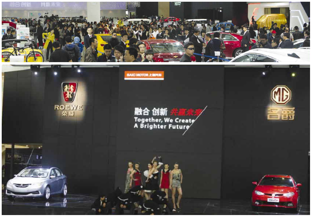 上海汽车以“融合创新、共赢未来”为主题,携荣威、MG名爵两大品牌共9款车型16辆展车第一个亮相,并面向全球首发两款突破性的车型:名爵MG6以及3G概念车荣威N1。