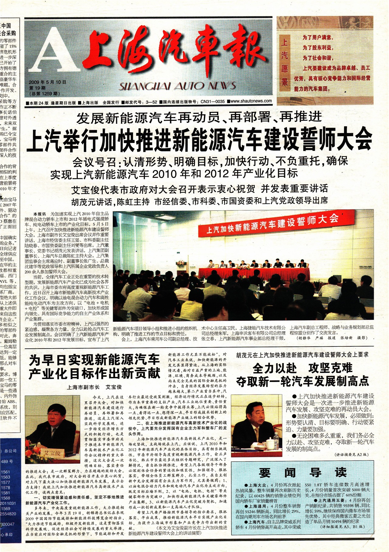 上汽举行加快推进新能源汽车建设誓师大会