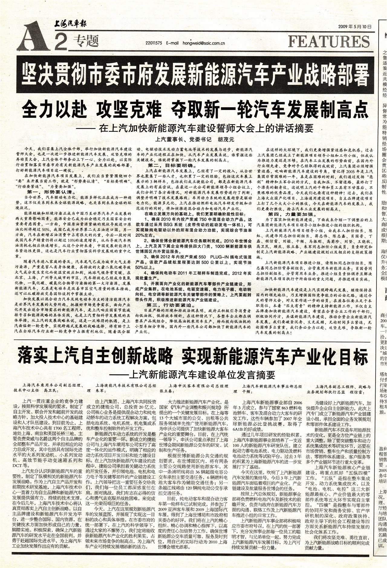 落实上汽自主创新战略 实现新能源汽车产业化目标