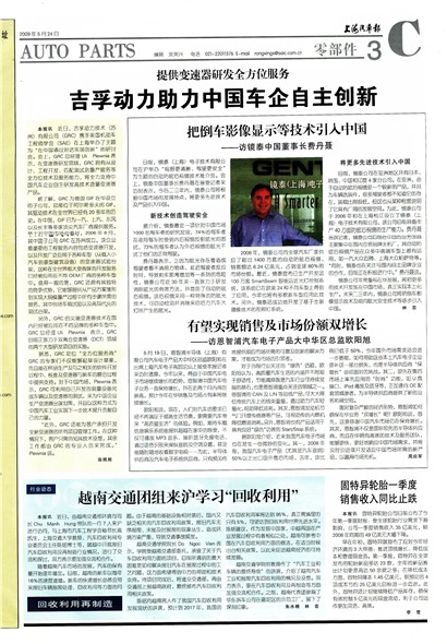 本报讯近日,吉孚动力技术(苏州)有限公司(GRC)携手美国机动车工程师学会(SAE)在上海举办了主题为“在中国通过对话实现创新”的研讨会。会上,GRC总经理Uli 1Plewnia表示,在变速器研发领域,GRC拥有从设计、工程开发、匹配测试到量产服务等全方位技术及服务能力,将全力支持中国汽车企业自主研发高技术含量变速器产品。