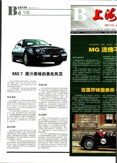 在宝马执掌的几年中,宝马将自己的技术、设计理念与MG品牌原有的优势相结合,创造了诸如MG-F等一系列经典车型。人们在MG7等车型身上,也能发现它在动力与操控性能方面深得宝马的真传。