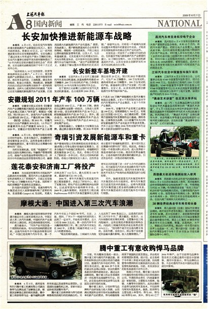 在现有基础上,安徽将大力发展自主品牌,通过联合重组和调整,到2020年培育1个具有100万辆产销规模的大型汽车整车制造企业集团,2至4个具有国内先进水平的汽车零部件生产企业集团,5至7个汽车产业集群。