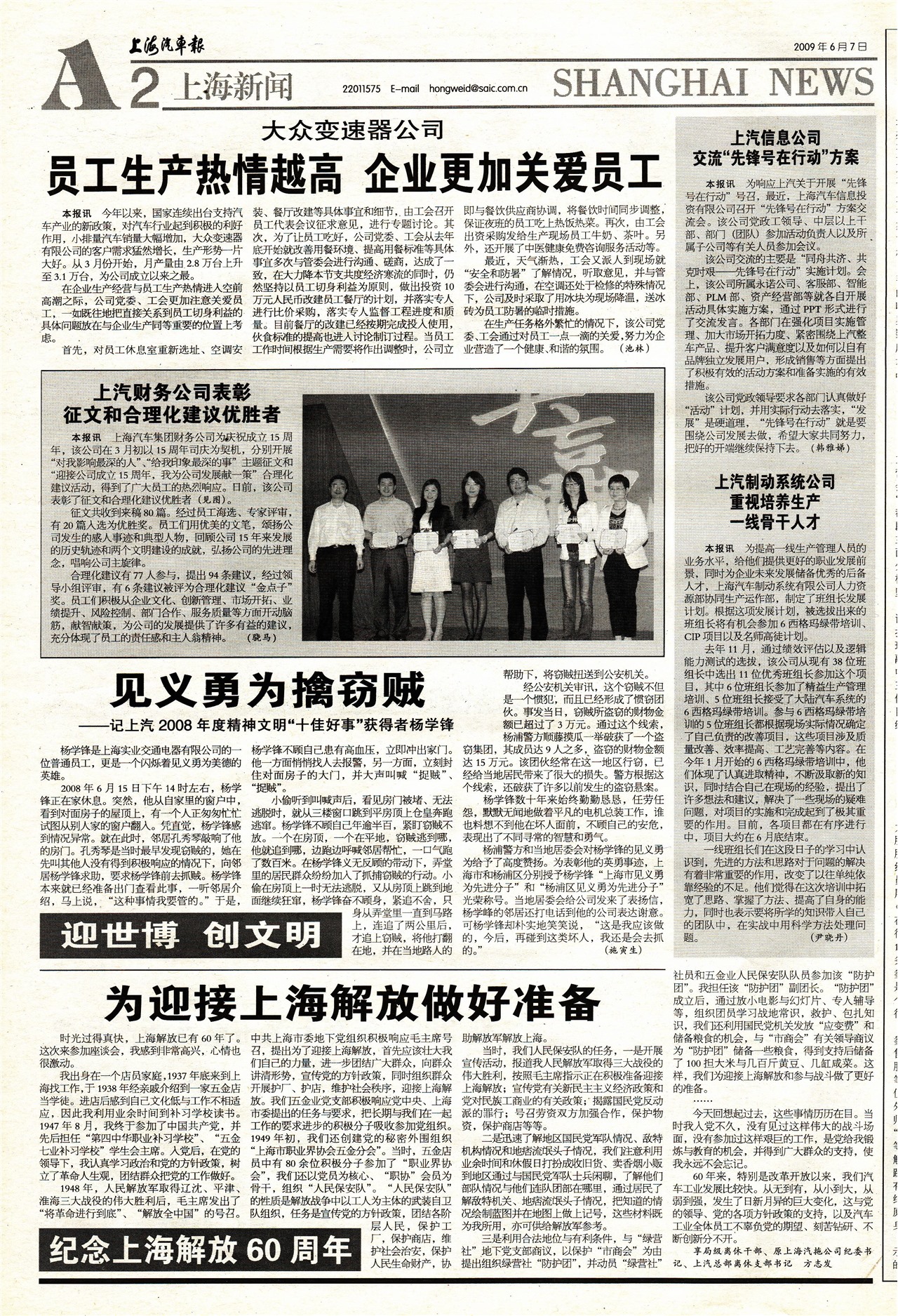 上汽财务公司表彰征文和合理化建议优胜者