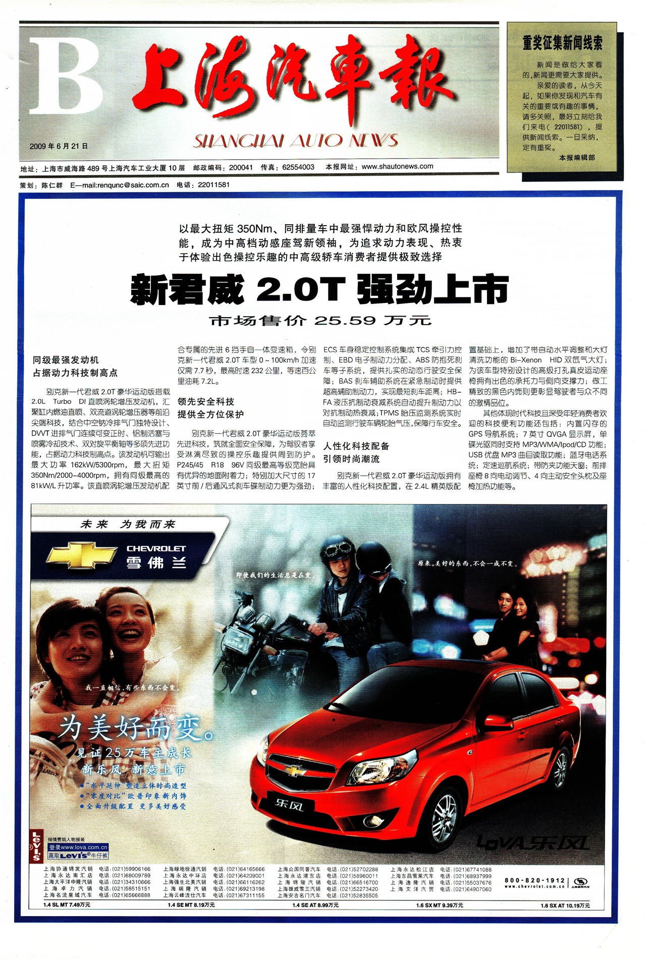 新君威2.0T强劲上市