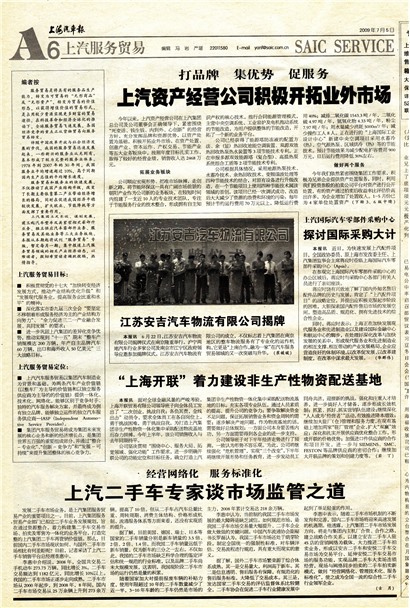 李惠中表示,随着二手车市场机制的不断发育和完善,国内二手车市场将迎来高速发展的机遇期。他透露,上汽集团二手车市场发展方向,将走与集团内主机厂合资、合作之路,建立战略合作关系,以建立安吉二手车入驻4S店的营销网络为载体,大力推进二手车拍卖业务,形成以安吉二手车和安悦二手车交易市场为交易平台、延伸安悦二手车交易市场的服务功能,实现品牌二手车大卖场连锁经营,现场与网络同步拍卖的二手车拍卖新模式,做到“经营网络化、管理技术化、服务标准化”,使之成为全国一流的综合性二手车行业领军企业。(古月)