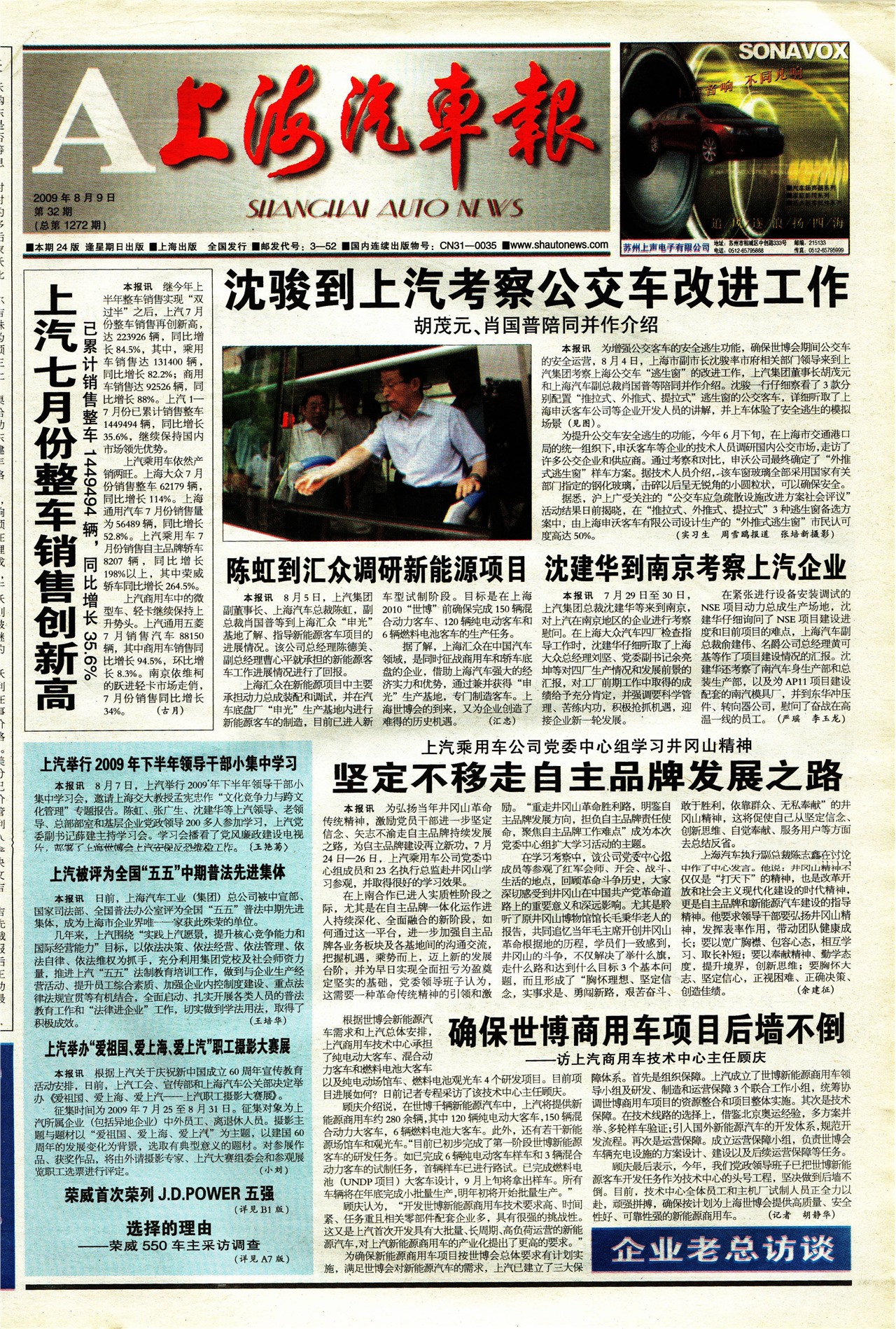 沈骏到上汽考察公交车改进工作