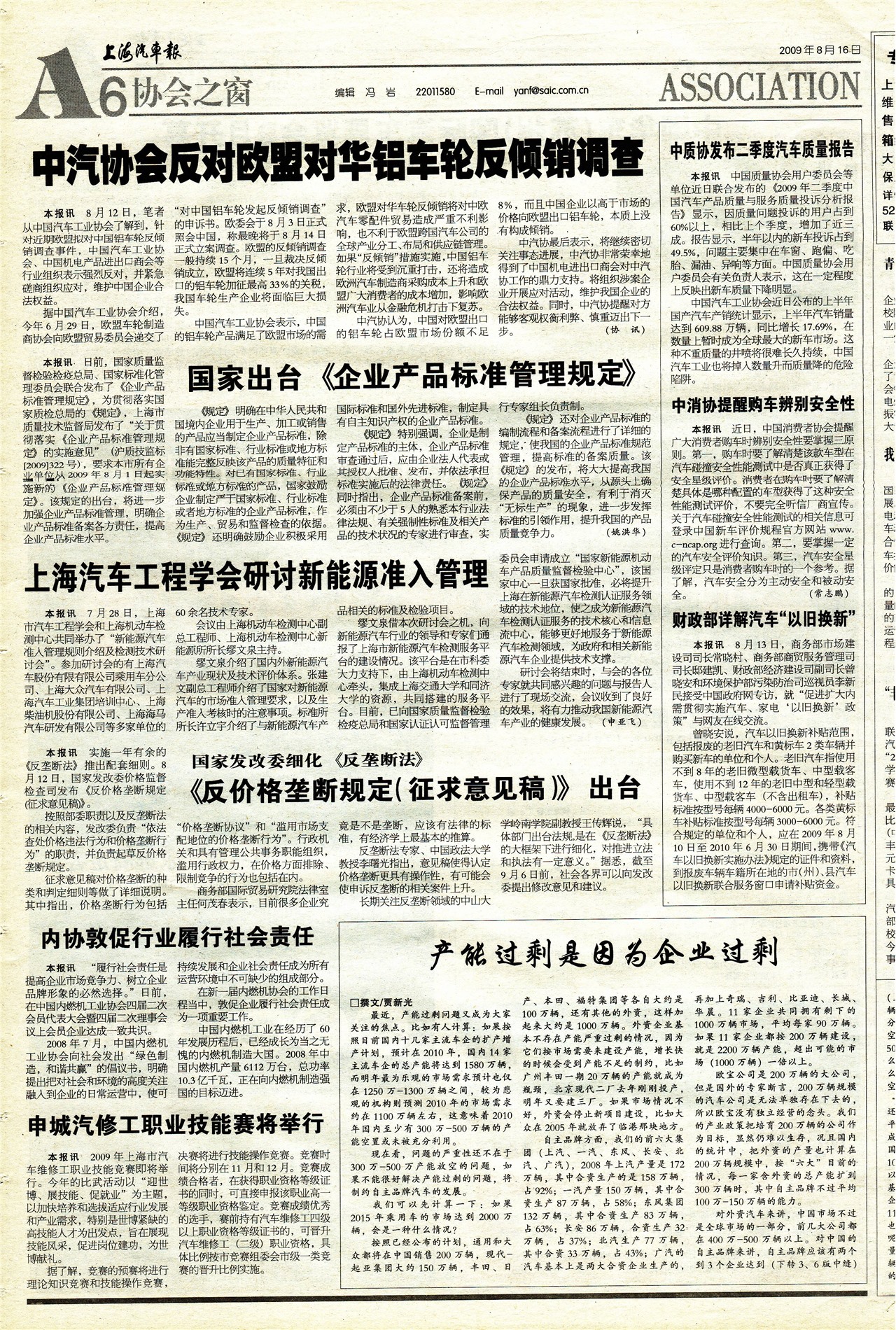 中汽协会反对欧盟对华铝车轮反倾销调查