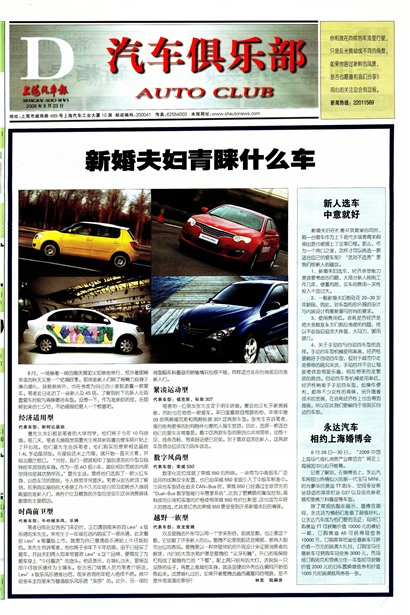 记者了解到,在婚博会上,永达汽车将展出热情似火的新一代宝马MINI、时尚豪华的奥迪TT 跑车、空间多变乘坐舒适的英菲尼迪G37以及别克新君威和雪佛兰科鲁兹等车型。