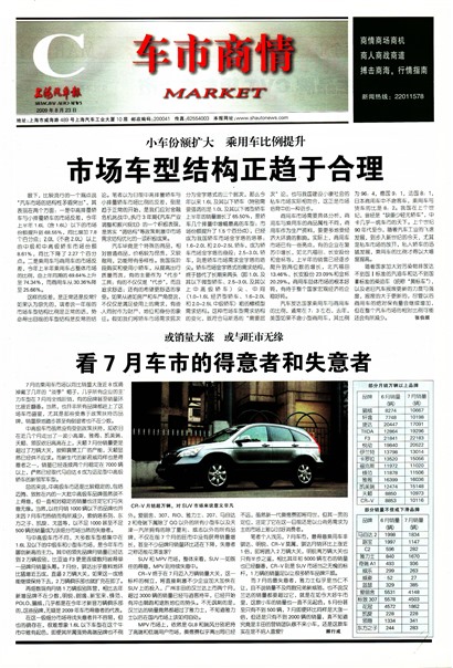 眼下,比较流行的一个观点说“汽车市场的结构性矛盾突出”,其表现在两个方面:一是中高排量轿车与小排量轿车的市场反差,今年上半年1.6L(含1.6L)以下的市场份额提升到68.55%,同比增加7.8个百分点;2.0L(不含2.0L)以上的中级和中高级轿车市场份额8.61%,同比下降了2.27个百分点。二是乘用车与商用车的市场反差,今年上半年乘用车占整体市场的比例,由上年同期的69.64%上升至74.34%,而商用车从30.36%降至25.66%。