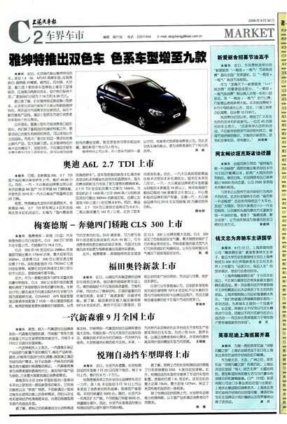 据悉,凭借奥迪先进的共轨直喷技术,全新奥迪A6L 2.7 TDI轿车将以4缸机的油耗达到8缸机的动力,无愧为“国内最高效的高档轿车”。该车型搭载的新型6缸清洁柴油发动机采用奥迪先进的共轨直喷技术,强大的燃油喷射压力创造了更为理想的燃烧效果。2.7升TDI发动机的最大功率为140kW,当发动机处于1400转/分至3500转/分的转速区间均可输出380Nm的峰值扭矩,由静止加速到100公里/小时仅需8.8秒。同时,奥迪A6L 2.7 TDI百公里综合油耗仅为6.8升,二氧化碳排放量为182克/公里,达到了欧Ⅳ的排放标准。对此,一汽大众高层借助奥迪的技术优势对未来充满信心,宣布在未来的几年中,一汽-大众奥迪品牌将把车型数量从目前的8款增至16款以上,将经销商展厅数由目前的146家增至210家以上,并以最积极的品牌和用户形象,支撑一汽-大众奥迪品牌冲向2015年实现销售20万辆的宏伟目标。