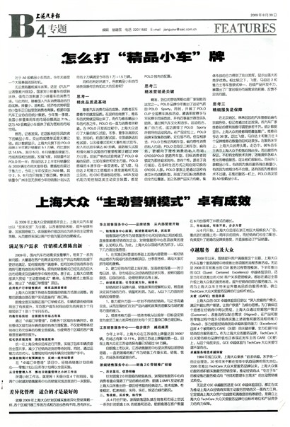 在2009年上海大众营销服务年会上,上海大众汽车提出以“变革攻坚”为主题,以改善营销效能、提升品牌形象、发展网络能力、体现服务价值这四点为抓手的主动营销策略,从而最终实现以客户价值为驱动的战略模式。