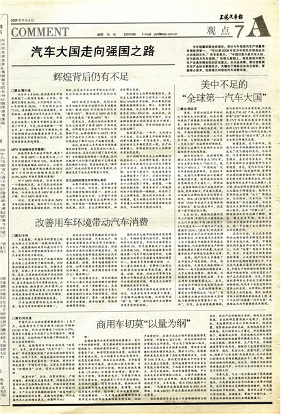 “政策呵护”,企业、消费者得益,产销量增长,看似皆大欢喜的美事。问题是我们的商用车由于总体附加值不高,价格自相竞争激烈,因此商用车增长没有给企业带来可观的利润。生产企业是否能摆脱国家的“政策呵护”,打破割据经济的束缚,在国内外市场,作为我国汽车工业的增长亮点:而有所作为?