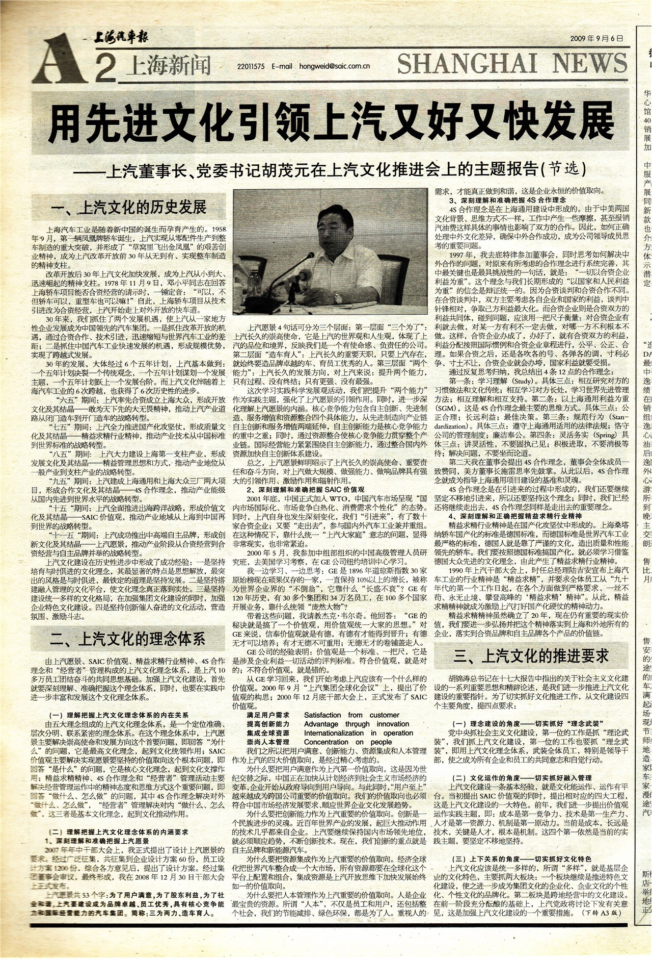 用先进文化引领上汽又好又快发展