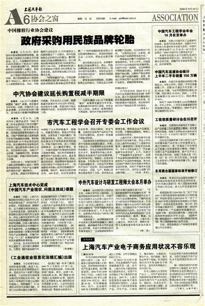 本报讯 为展示中国汽车工业最新科技成果,促进汽车技术进步,加强中外汽车科技工作者的学术交流与合作,中国汽车工程学会将于10月20日—22日在北京举办“2009中国汽车工程学会年会”。
