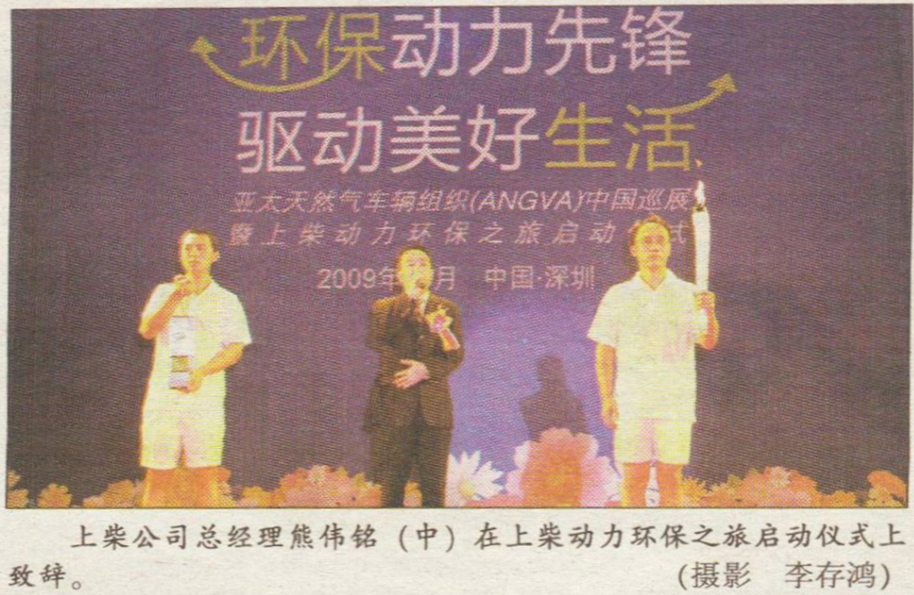 熊伟铭说,上柴此次承办亚太天然气车辆组织(ANGVA)在中国的巡展,是因为上柴长期以来致力于天然气发动机研发、生产与推广,与ANGVA 推广宗旨吻合,双方具有较高契合度。上柴公司在开发亚洲相关市场、技术交流中与ANGVA组织有过多种形式的合作。上柴选择深圳作为本次活动的起点站,是因为深圳作为我国改革开放前沿城市,与我们活动主题“环保动力先锋”是一致的。以深圳为代表的我国华南沿海区域,在新能源动力方面有着广泛的市场前景,上柴与深圳及华南的诸多省市已有诸多方面的良好合作。