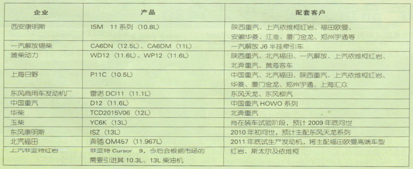 我国10L以上柴油机生产厂家及配套整车情况,上海汽车报