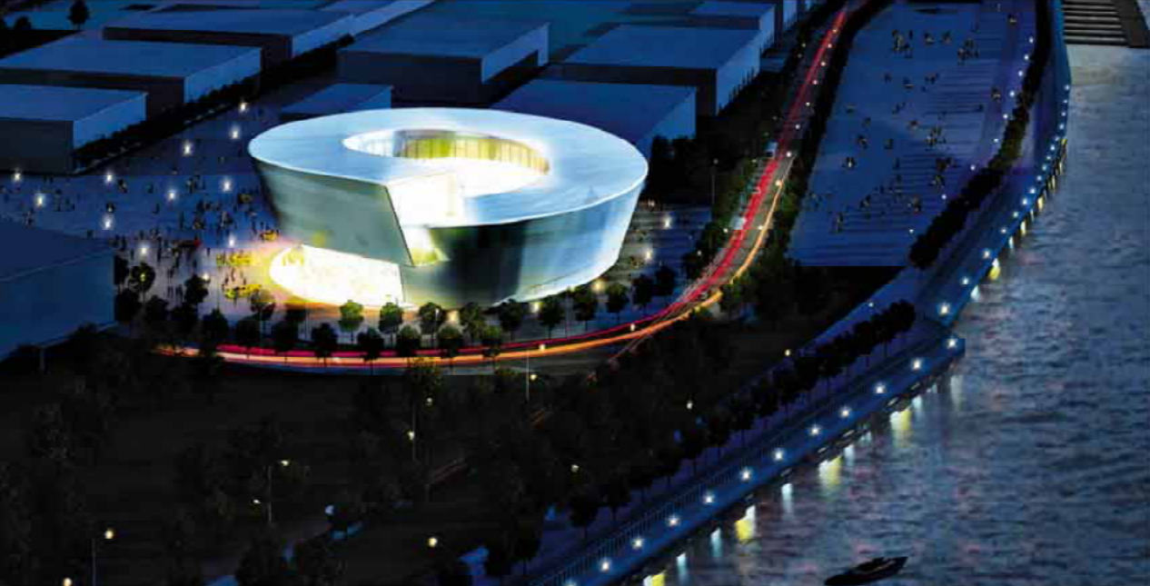 美丽的黄浦江见证着上汽-通用汽车馆拔地而起,升腾旋转,眺望东方。