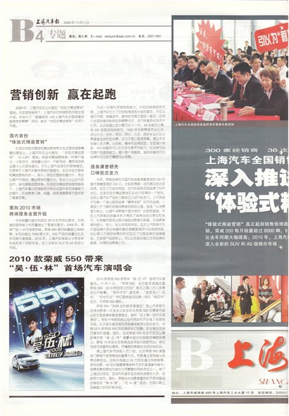 “体验式精益营销”真正起到销售倍增器的作用。2009年,荣威产品1-9月连续热销,荣威550每月销量超过6000辆,9月份超过70000辆大关,MG产品的销量也比去年同期大幅提高;2010年,上海汽车将推出3款全新车型和多个改款车型,将进入全新的 SUV 和A0 级细分市场