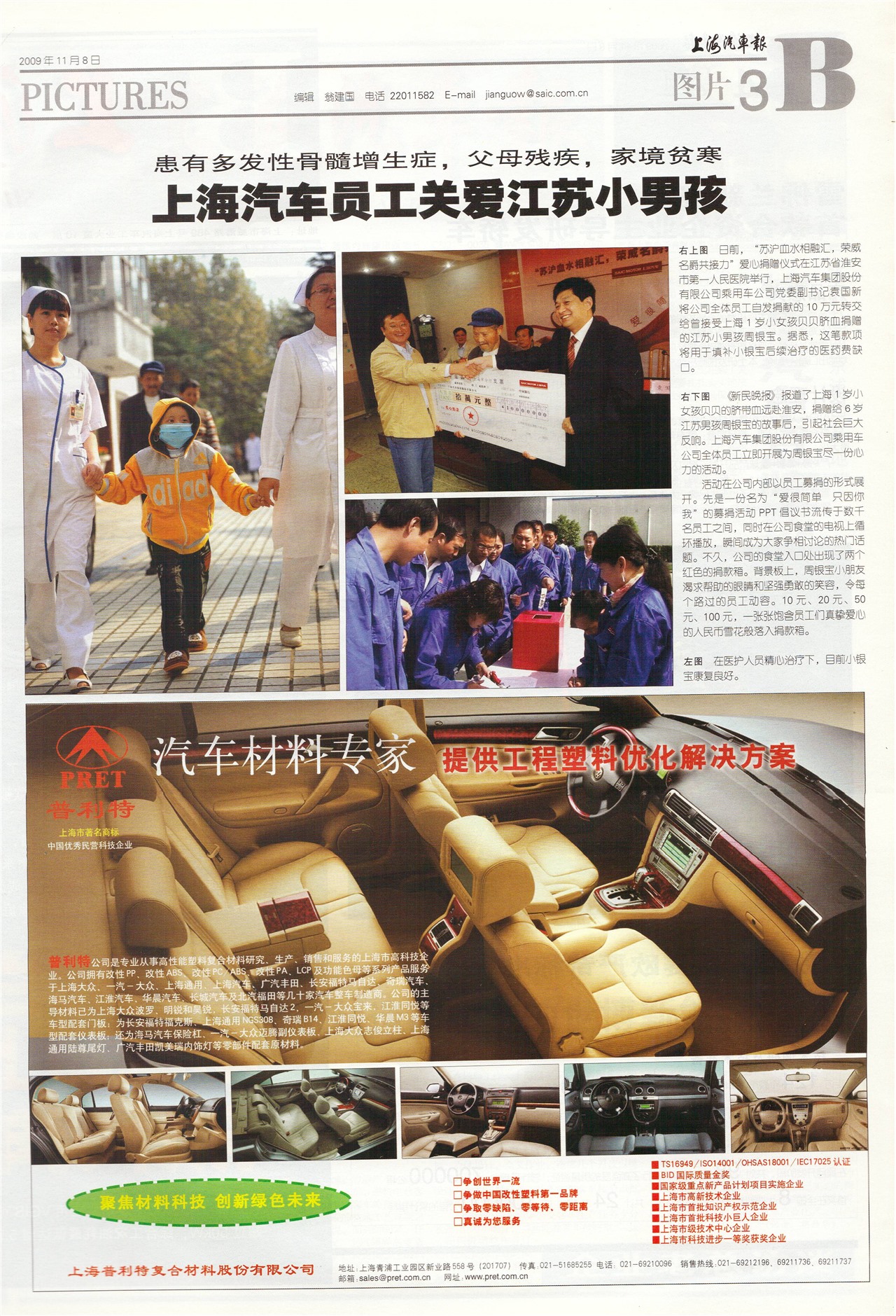 上海汽车员工关爱江苏小男孩