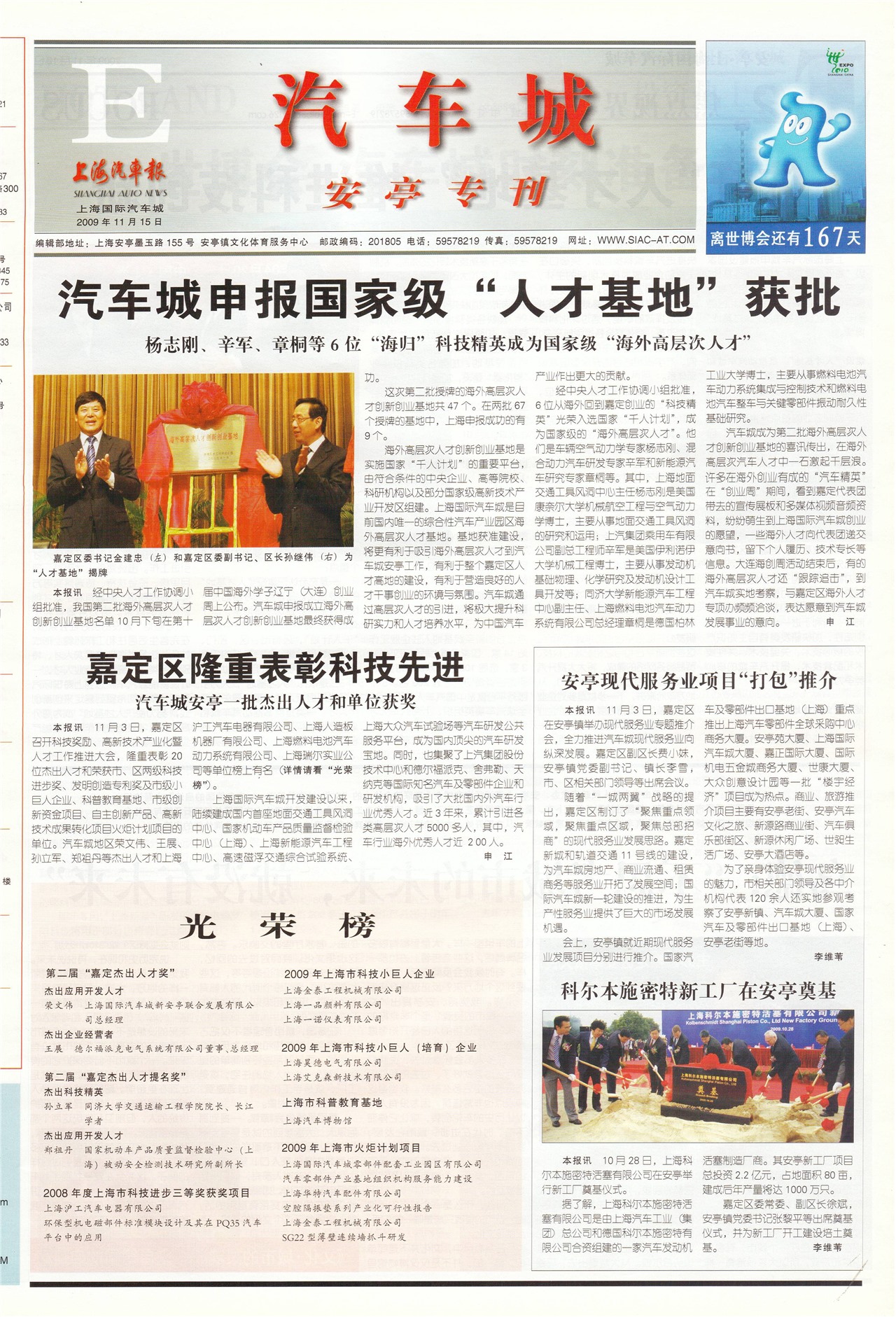 汽车城安亭一批杰出人才和单位获奖
