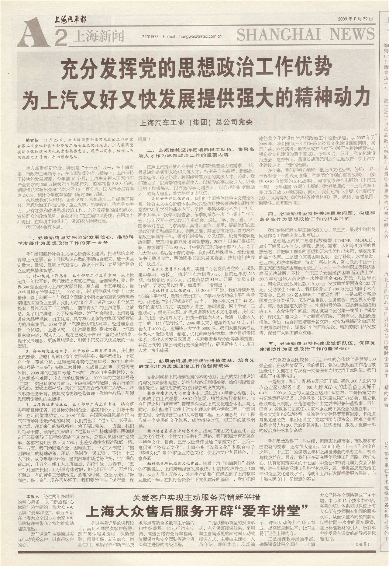 充分发挥党的思想政治工作优势 为上汽又好又快发展提供强大的精神动力