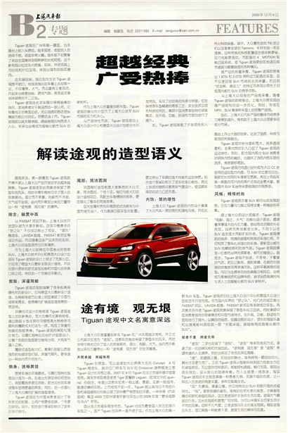 上海大众年度重量级新车Tiguan在广州车展首次亮相,并正式公布其中文名为“途观”。这款车完美地保留了原型车的风采,同时非常中肯地切中了国人的审美期待,强壮、刚毅、大气,由内而外散发出来的力量带出一种“途有境观无垠”的生活意境。