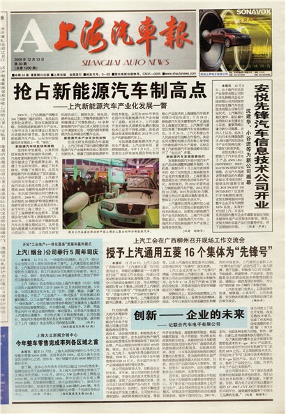 本报讯 12月8日,由上海汽车信息产业投资有限公司和日本先锋株式会社中国有限公司共同投资的安悦先锋汽车信息技术有限公司举行开业仪式。上汽集团总裁沈建华、副总裁叶永明和日本先锋社长小谷进、董事黑崎正谦为新公司揭幕。业内人士认为,此次上汽与日本先锋强强联手,预示着汽车信息电子产业市场将出现一个强有力的竞争者。