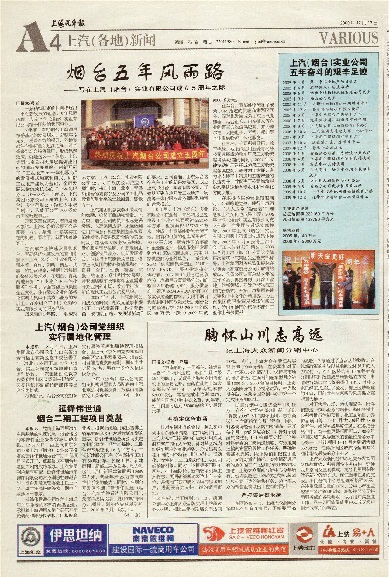上汽(烟台)实业公司五年奋斗的艰辛足迹